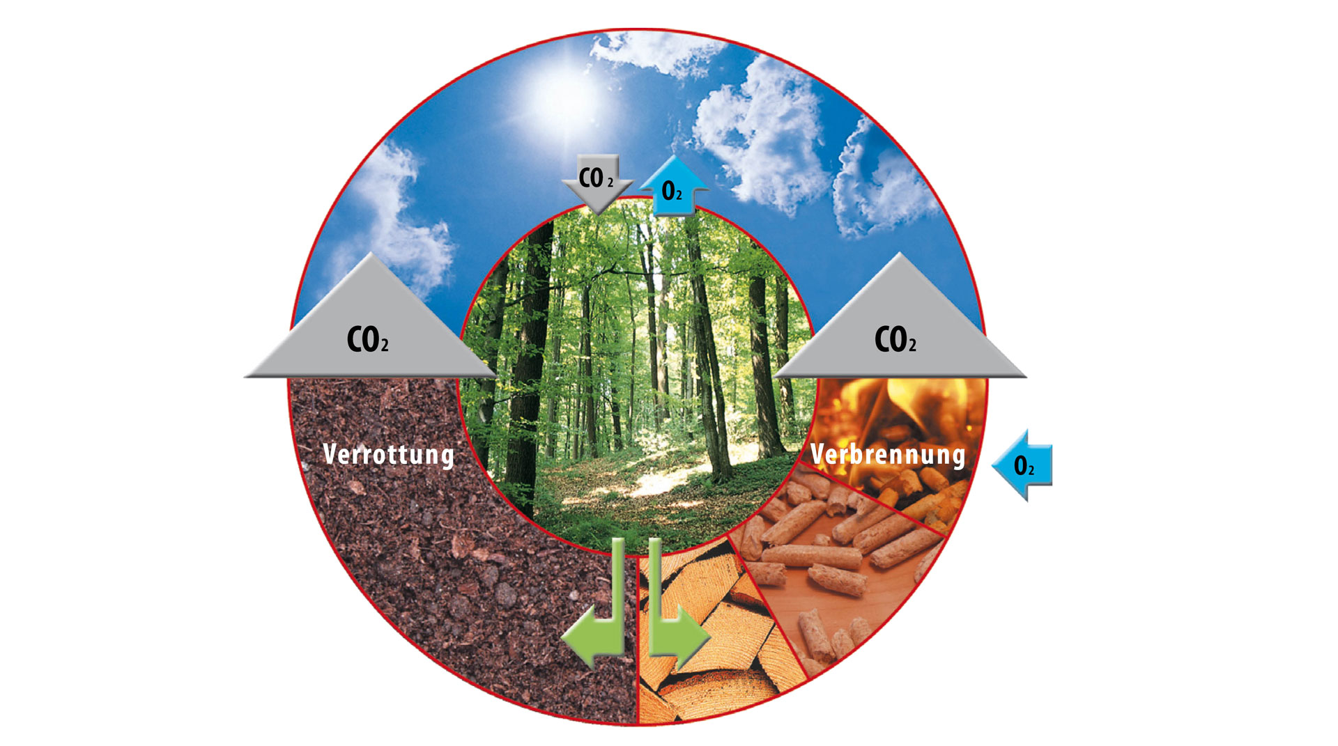 Holzheizungen, insbesondere Pelletanlagen, bieten eine umweltschonende Alternative zu fossilen Brennstoffen und nutzen nachwachsende Rohstoffe. Die Verbrennung von Holz ist CO₂-neutral, da nur so viel CO₂ freigesetzt wird, wie der Baum während seines Wachstums aufgenommen hat.